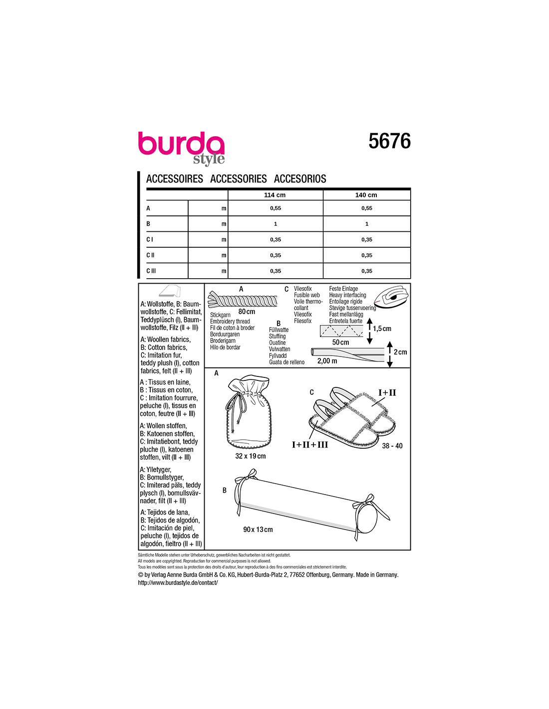 Burda symönster 5676 - Accessoarer - One Size (Tofflor 38-40)