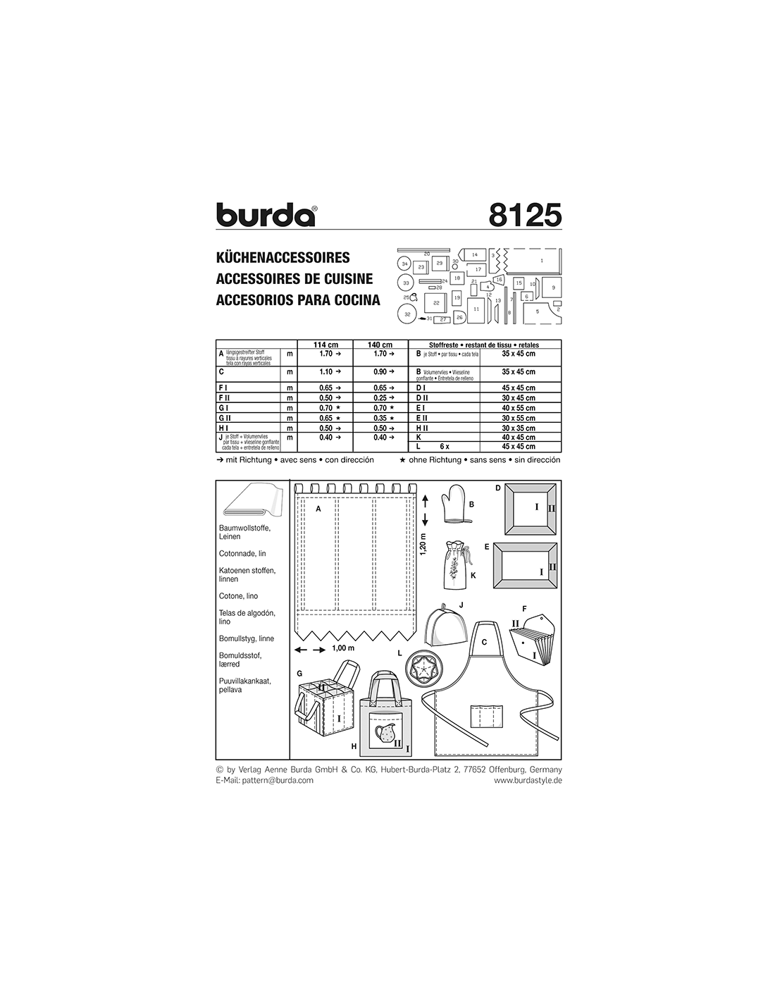 Burda symönster 8125 - Accessoarer till köket - One Size