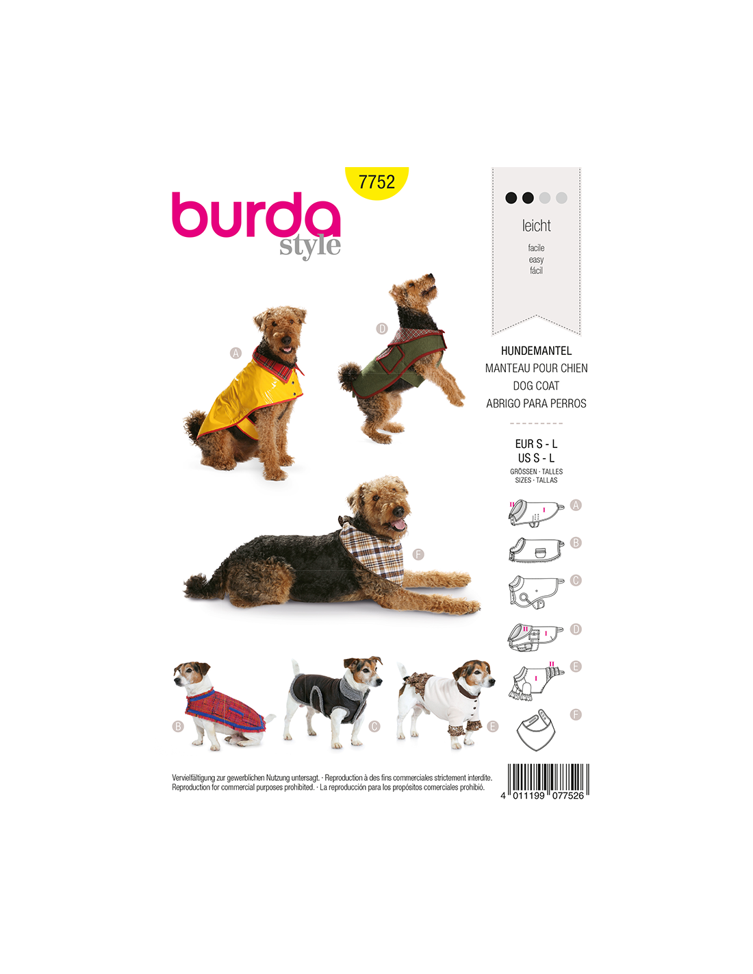 Burda symönster 7752 - Accessoar Hund - Strl S-L