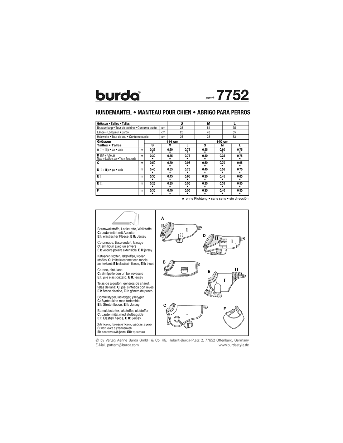 Vill du ha hjälp att tolka tygåtgången? Skicka ett mail till info@tygcenter.se med rubrik Burda 7752 så hjälper vi dig.