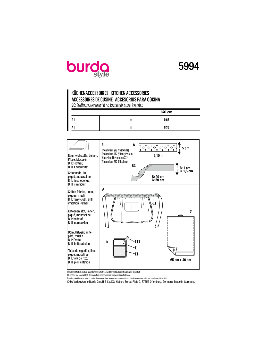Vill du ha hjälp att tolka tygåtgången? Skicka ett mail till info@tygcenter.se med rubrik Burda 5994 så hjälper vi dig.