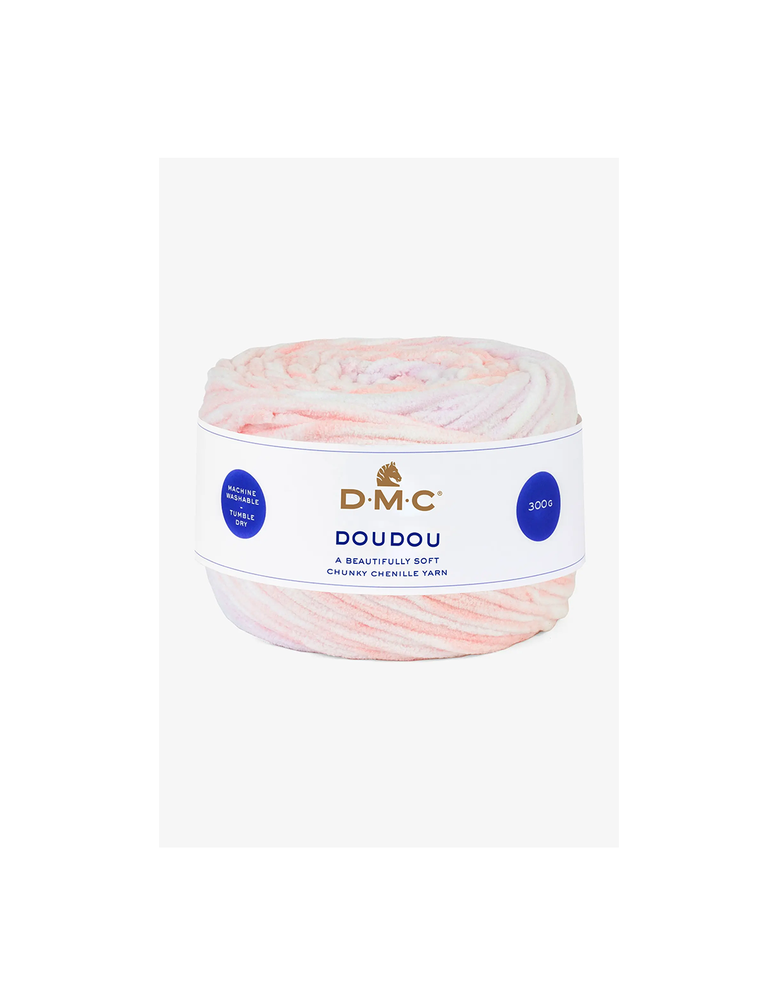 Chunky Chenille-garn från DMC. Melerat nystan i vitt, korall och ljusrosa.