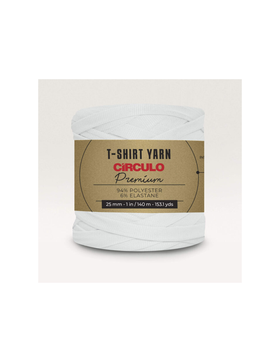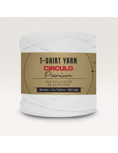 Vitt t-shirtgarn från Circulo. Tillverkas specifikt för att användas som garn, det betyder att du får en jämn tjocklek genom hela nystanet och slipper oönskade knutar.