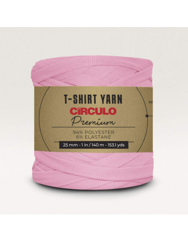 Rosa t-shirtgarn från Circulo. Tillverkas specifikt för att användas som garn, det betyder att du får en jämn tjocklek genom hela nystanet och slipper oönskade knutar.