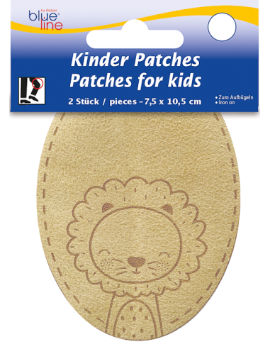 Ovalt tygmärke att stryka fast med ett gulligt lejon på, 2-pack.
