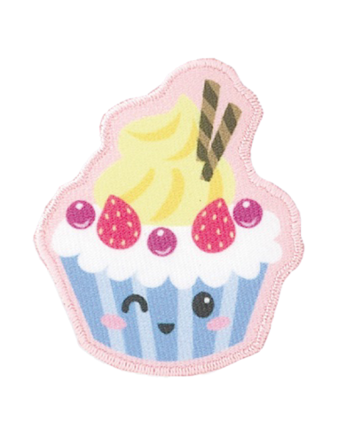 Tygmärke att stryka fast i form av en bakelse.