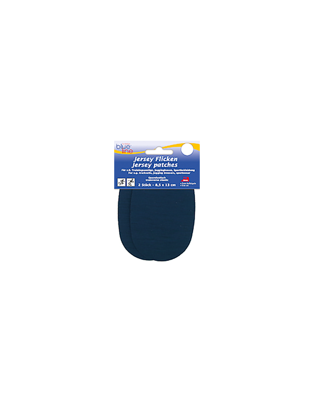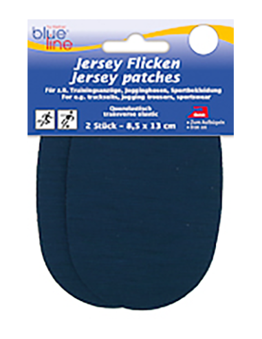 2-pack mörkblåa laglappar att stryka fast, i jerseymaterial för att laga stretchiga plagg.