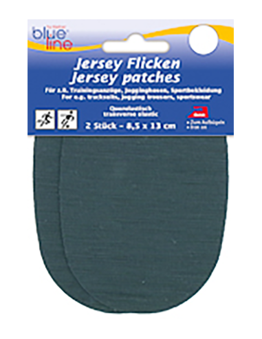2-pack mörkgråa laglappar att stryka fast, i jerseymaterial för att laga stretchiga plagg.