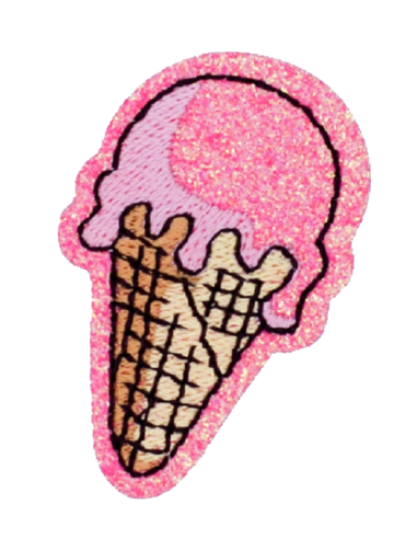 Tygmärke att stryka fast i form av en glittrig glasstrut.