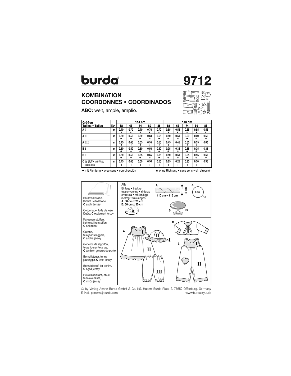 Vill du ha hjälp att tolka tillbehören? Skicka ett mail till info@tygcenter.se med rubrik Burda 9712 så hjälper vi dig.