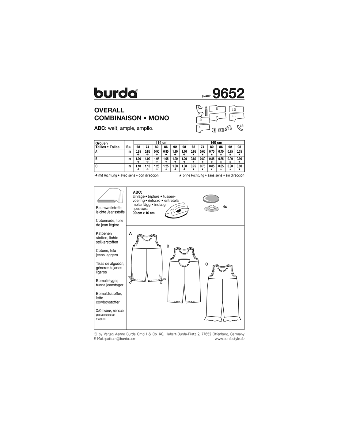 Vill du ha hjälp att tolka tygåtgången? Skicka ett mail till info@tygcenter.se med rubrik Burda 9652 så hjälper vi dig.