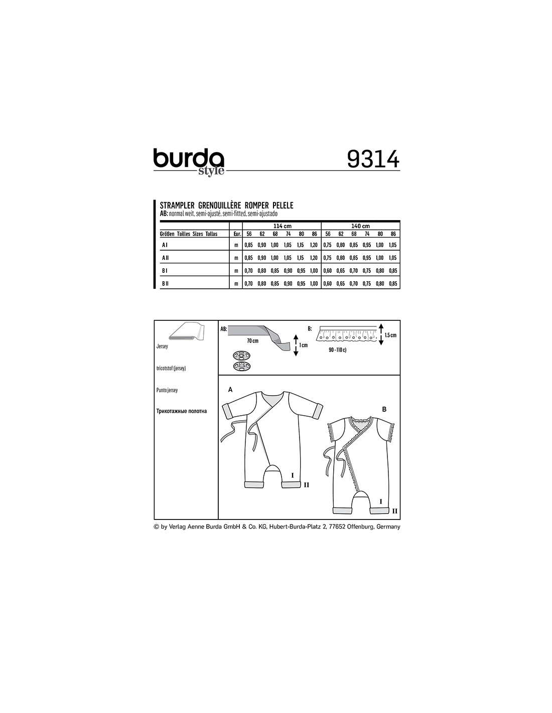 Vill du ha hjälp att tolka tygåtgången? Skicka ett mail till info@tygcenter.se med rubrik Burda 9314 så hjälper vi dig.