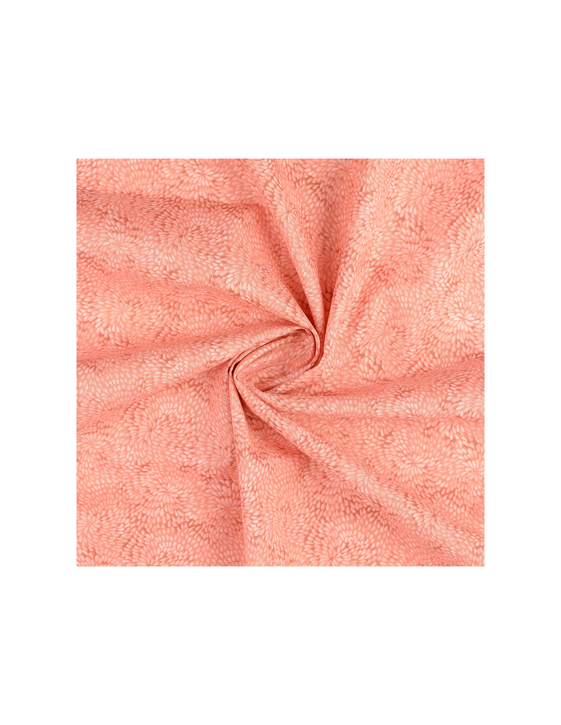 Laxrosa bomullspoplin med snirkliga mönster. Tunt bomullstyg som passar till sömnad av kuddar, gardiner, skjortor, klänningar m.m.