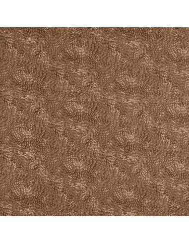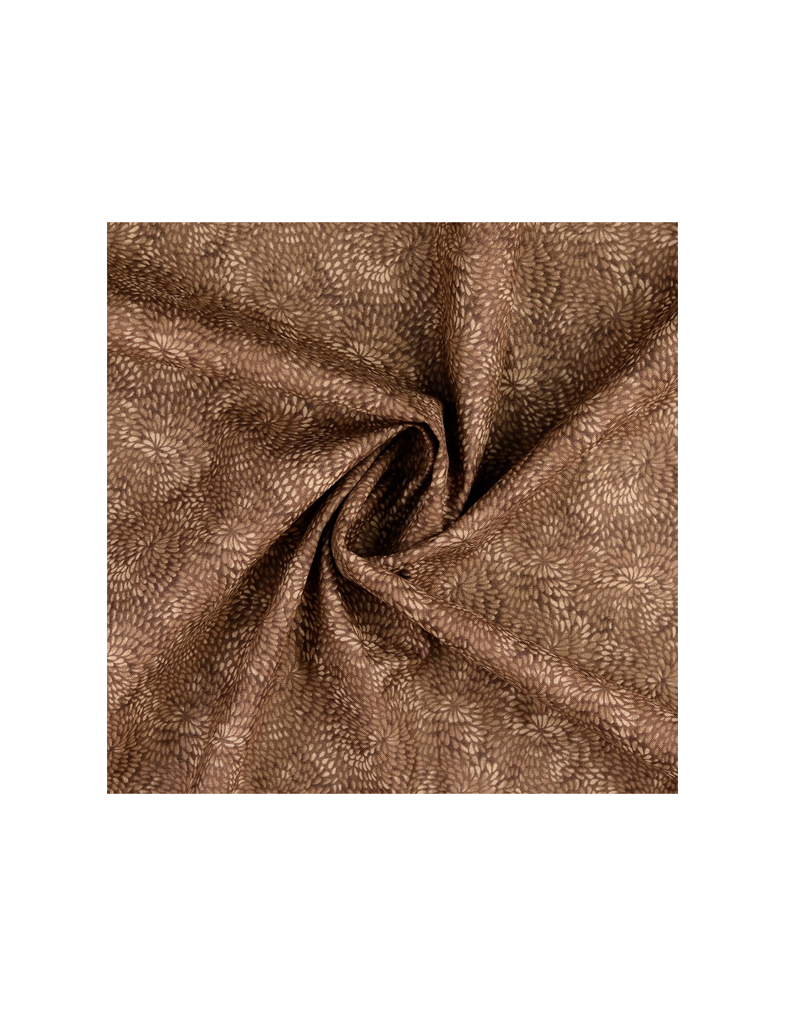 Brun bomullspoplin med snirkliga mönster. Tunt bomullstyg som passar till sömnad av kuddar, gardiner, skjortor, klänningar m.m.