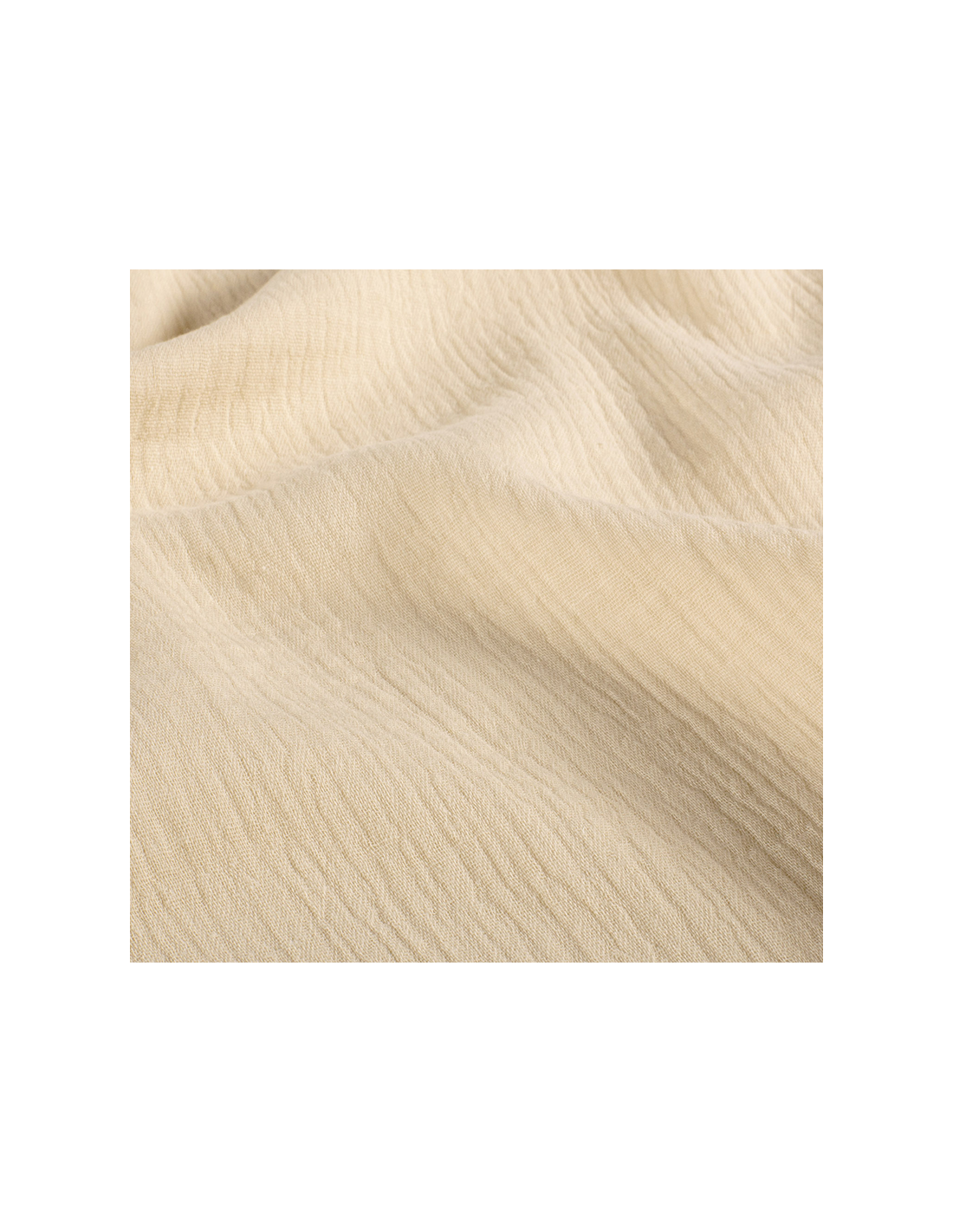 Ljusbeige muslin, ett lätt luftigt tyg med fin struktur. Användningsområdena är många, till exempel kläder, babyfiltar m.m.
