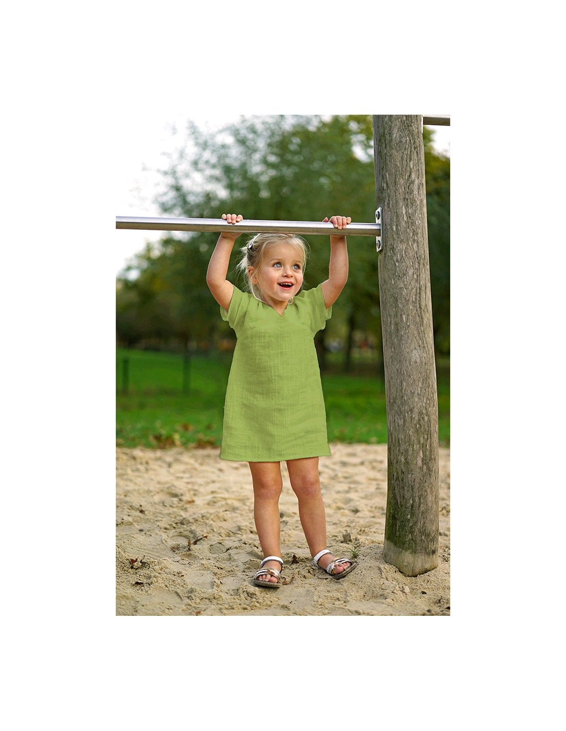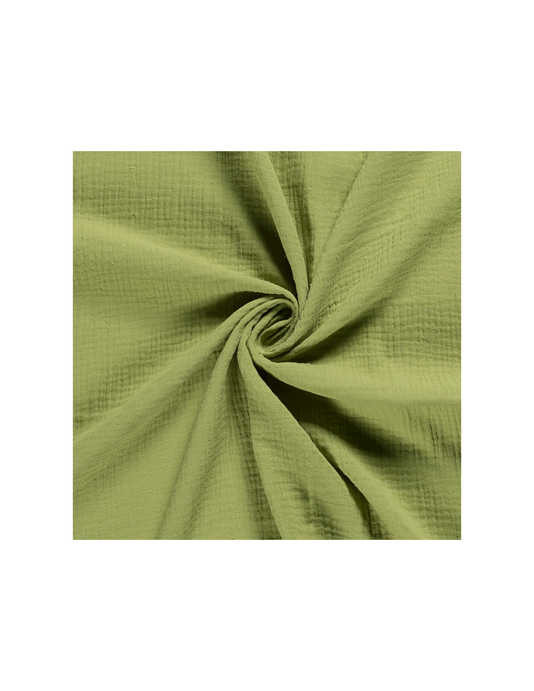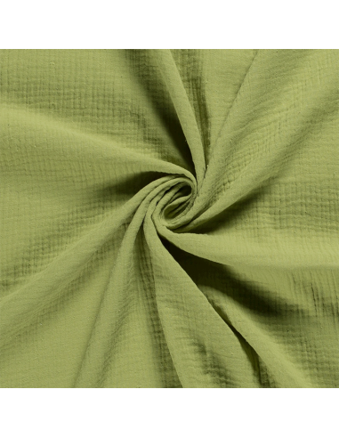 Enfärgad muslin i ljust olivgrön. Ett lätt luftigt tyg med fin struktur. Användningsområdena är många, till exempel kläder, babynest, babyfiltar m.m.