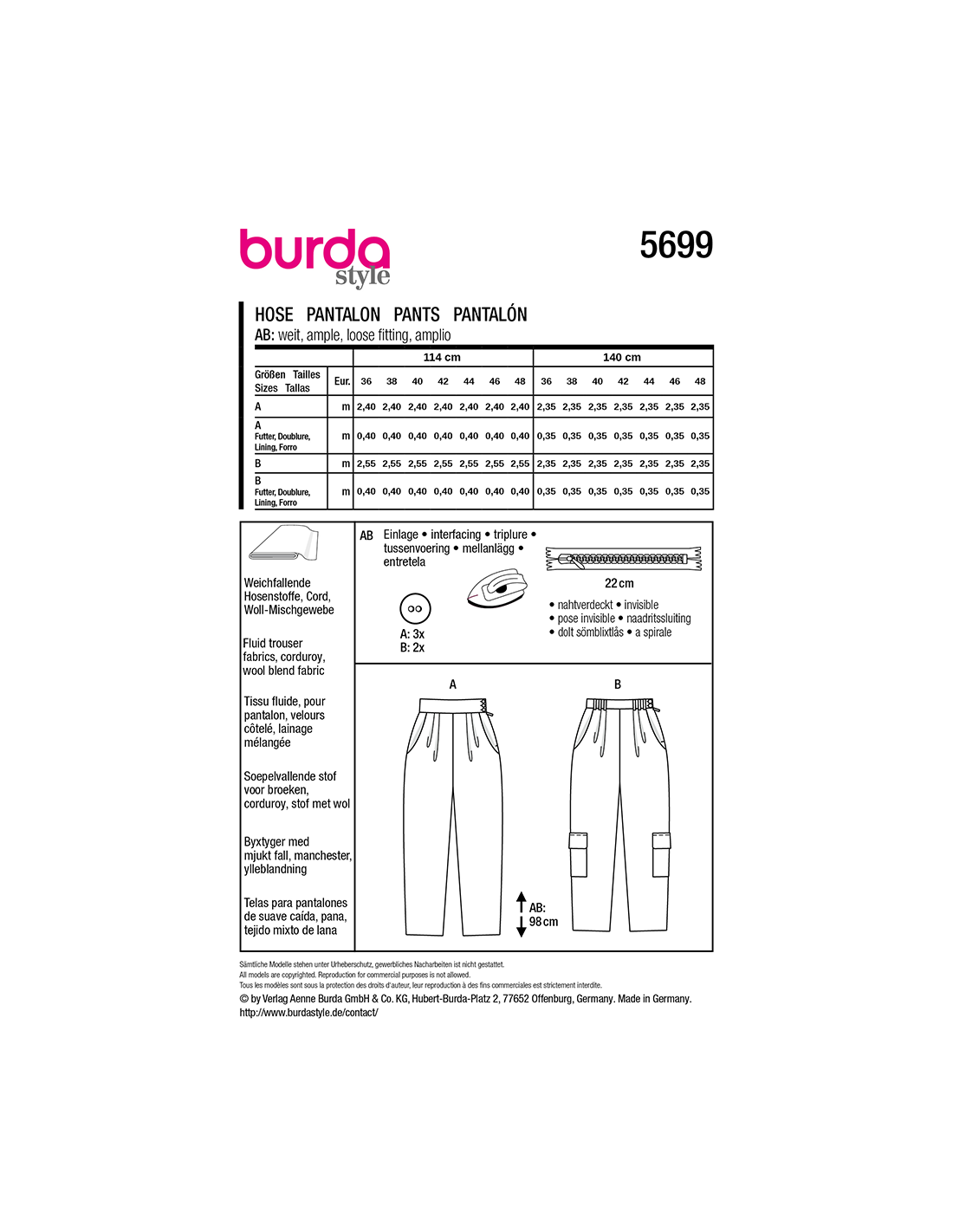 Vill du ha hjälp att tolka tygåtgången? Skicka ett mail till info@tygcenter.se med rubrik Burda 5699 så hjälper vi dig.