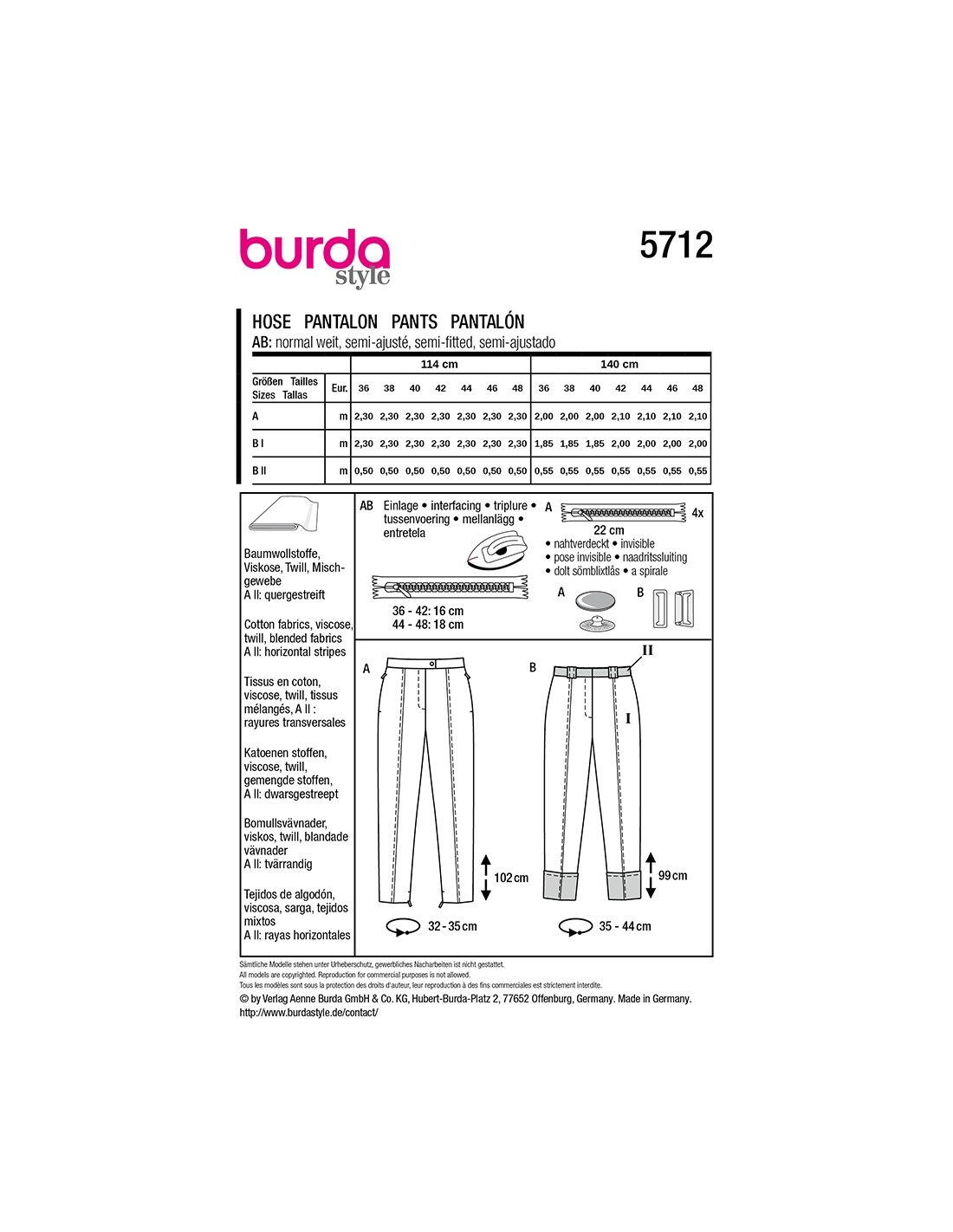 Vill du ha hjälp att tolka tygåtgången? Skicka ett mail till info@tygcenter.se med rubrik Burda 5712 så hjälper vi dig.