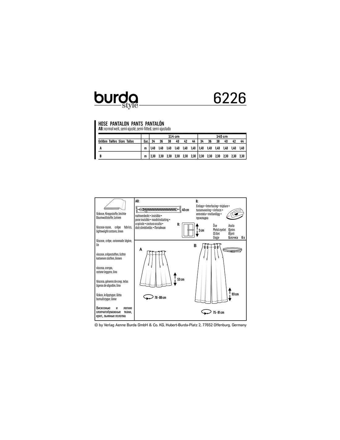 Vill du ha hjälp att tolka tygåtgången? Skicka ett mail till info@tygcenter.se med rubrik Burda 6226 så hjälper vi dig.