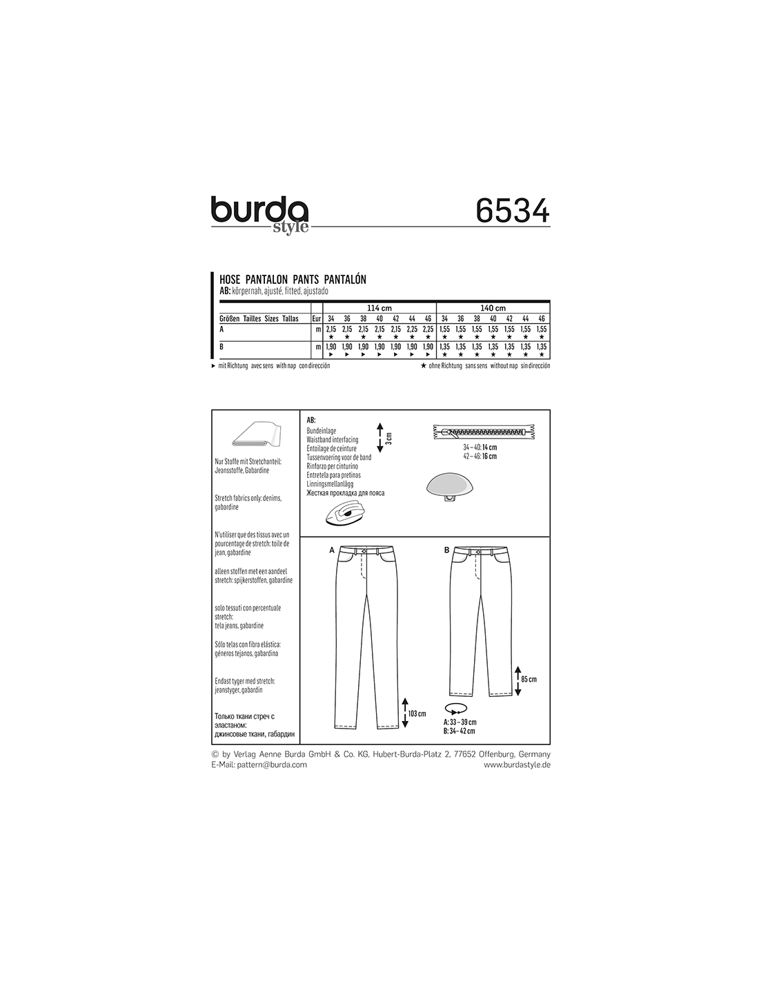 Vill du ha hjälp att tolka tygåtgången? Skicka ett mail till info@tygcenter.se med rubrik Burda 6534 så hjälper vi dig.