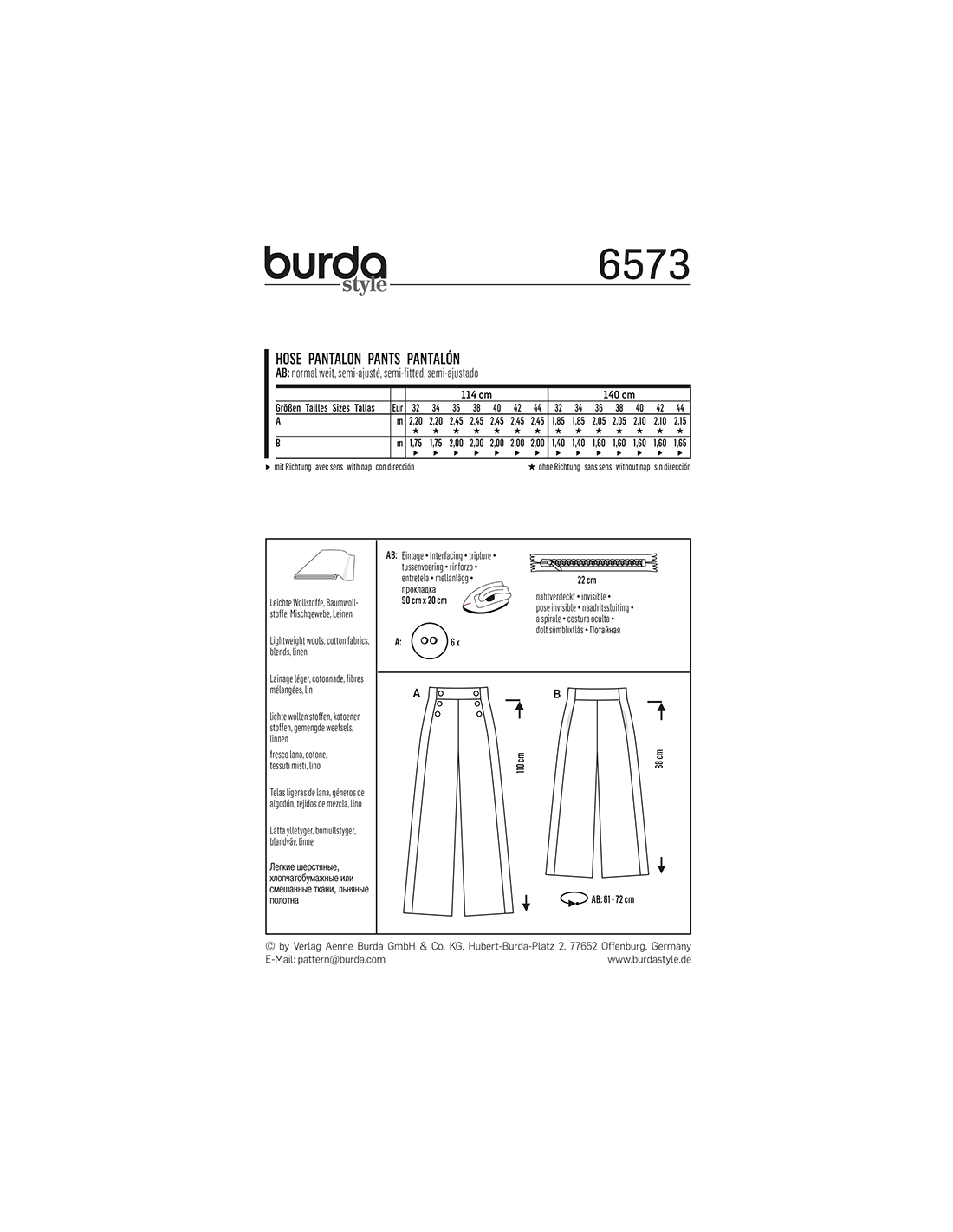 Vill du ha hjälp att tolka tygåtgången? Skicka ett mail till info@tygcenter.se med rubrik Burda 6573 så hjälper vi dig.