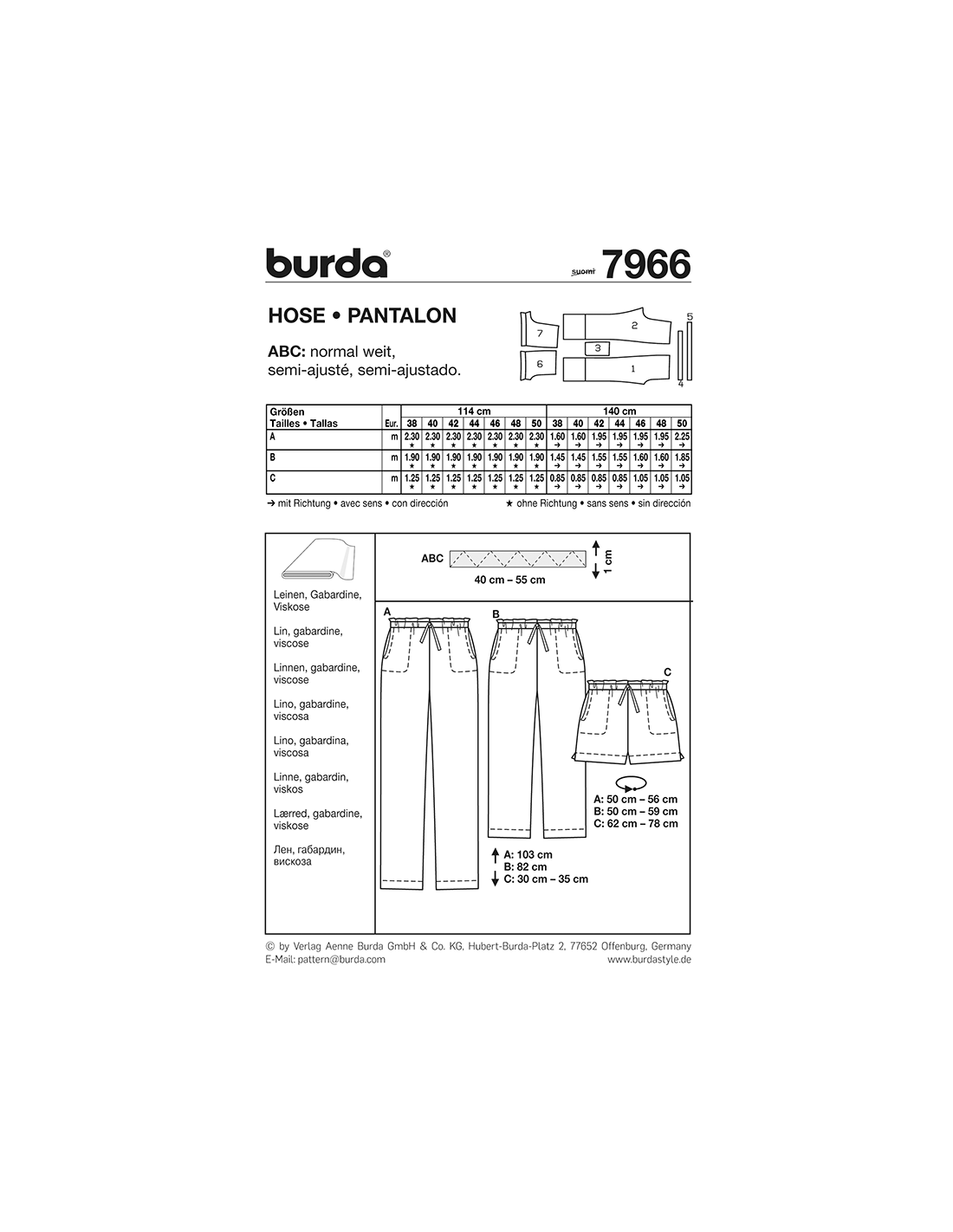 Vill du ha hjälp att tolka tygåtgången? Skicka ett mail till info@tygcenter.se med rubrik Burda 7966 så hjälper vi dig.