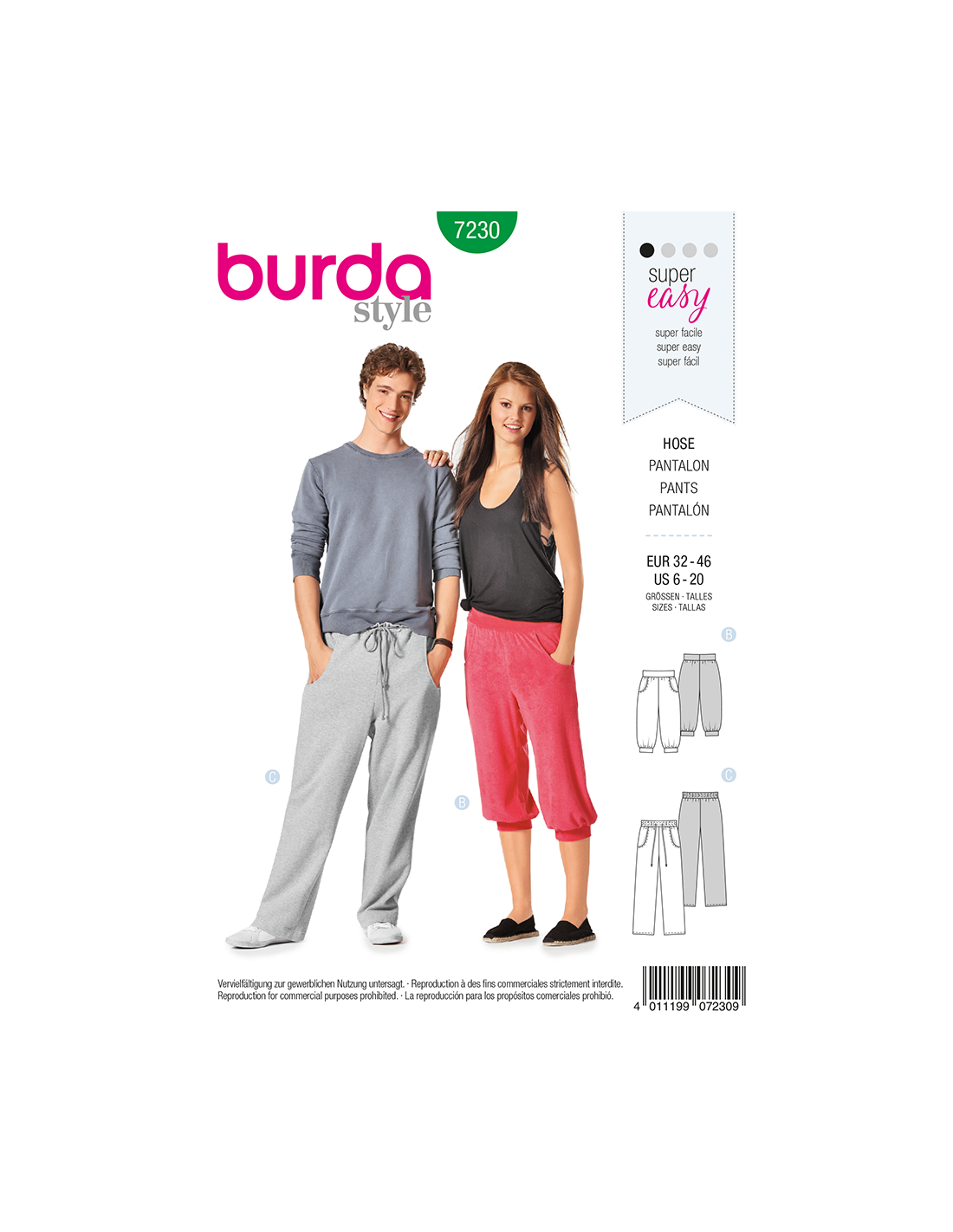 Burda symönster 7230 - Mjukisbyxor Unisex - Strl 32-46