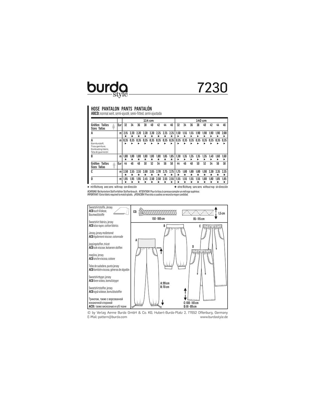 Vill du ha hjälp att tolka tygåtgången? Skicka ett mail till info@tygcenter.se med rubrik Burda 7230 så hjälper vi dig.