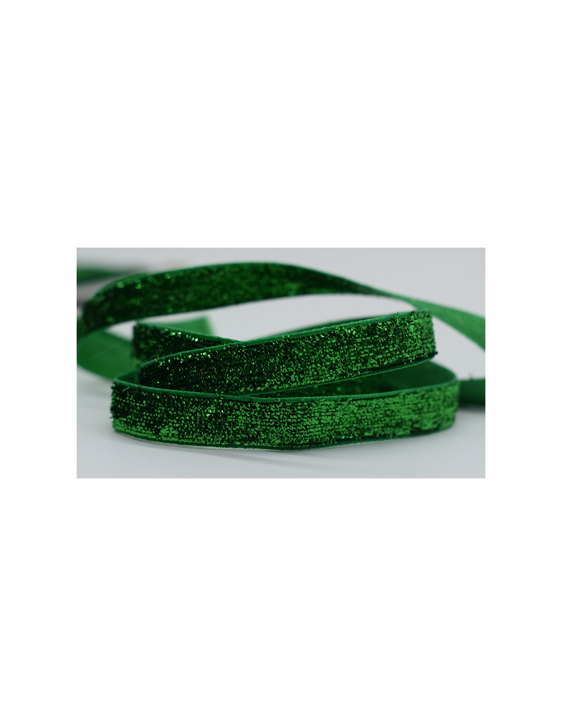 Glittrigt dekorband i grönt.