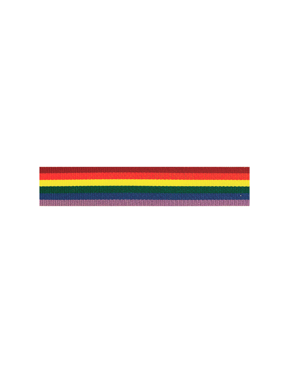 Randigt dekorband i regnbågsfärger som ger en lekfull och färgstark detalj till kläder, accessoarer och pyssel. Perfekt för sömnad, dekoration och kreativa projekt.