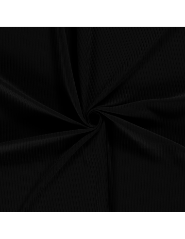 Ribbad bomullsjersey i svart. Tunt stretchigt och ribbat tyg som lämpar sig bäst till klädsömnad så som t-shirts, klänningar, toppar, leggings m.m.