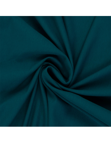 Enfärgad mörkt blågrön french terry med öglad baksida. Lämpar sig bäst till klädsömnad som till exempel byxor, sweatshirts, huvtröjor m.m.