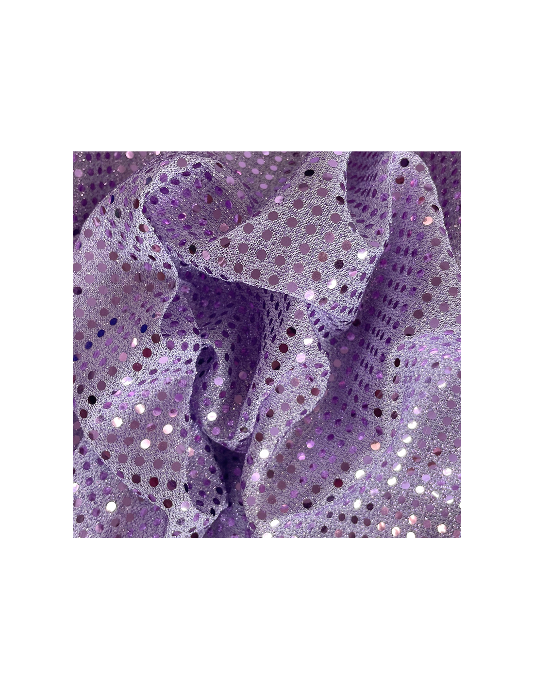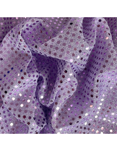 Ljuslila stickat tyg med påklistrade paljetter och glittertrådar i ljuslila. OBS! Tyget är ganska genomskinligt.