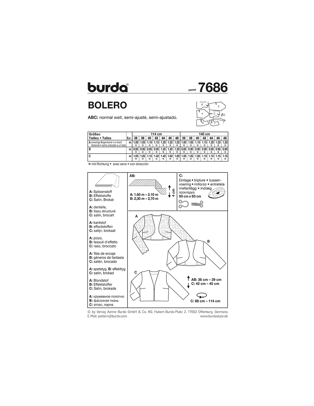 Vill du ha hjälp att tolka tygåtgången? Skicka ett mail till info@tygcenter.se med rubrik Burda 7686 så hjälper vi dig.