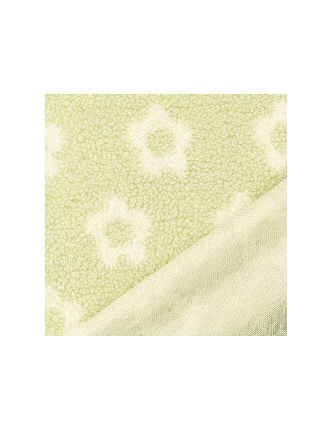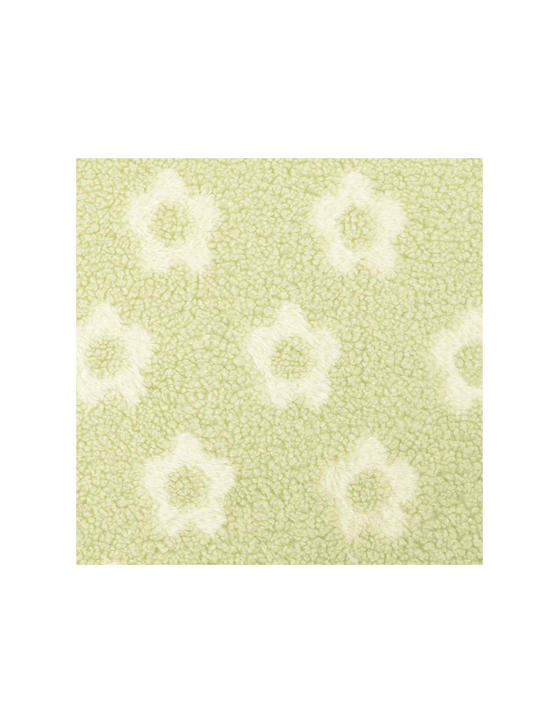 Mjukt och fluffigt teddytyg i ljusgrön, dekorerat med söta vita blommor. Perfekt till gosiga plagg, filtar, babyprojekt och mjuka accessoarer. Tyget ger en varm lekfull och ombonad känsla som passar fint till små som stora favoritprojekt.