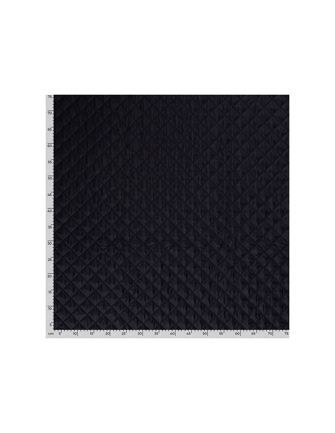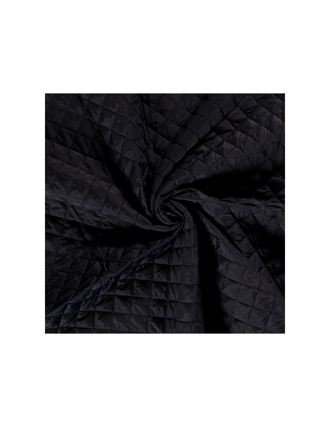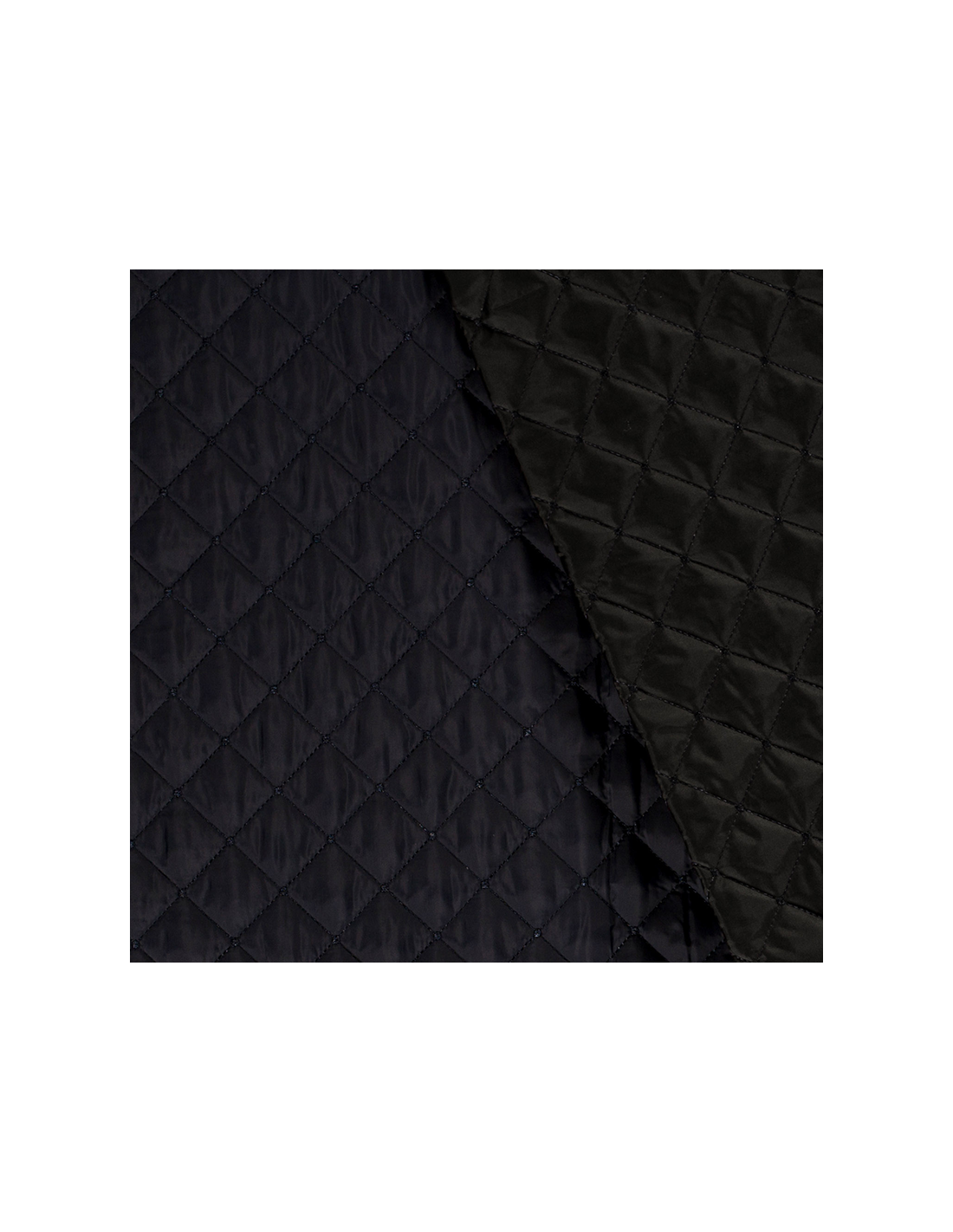 Marinblått quiltat foder med vadderad kärna och svart baksida.
