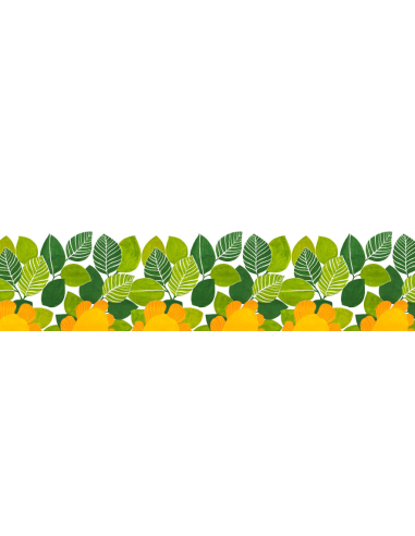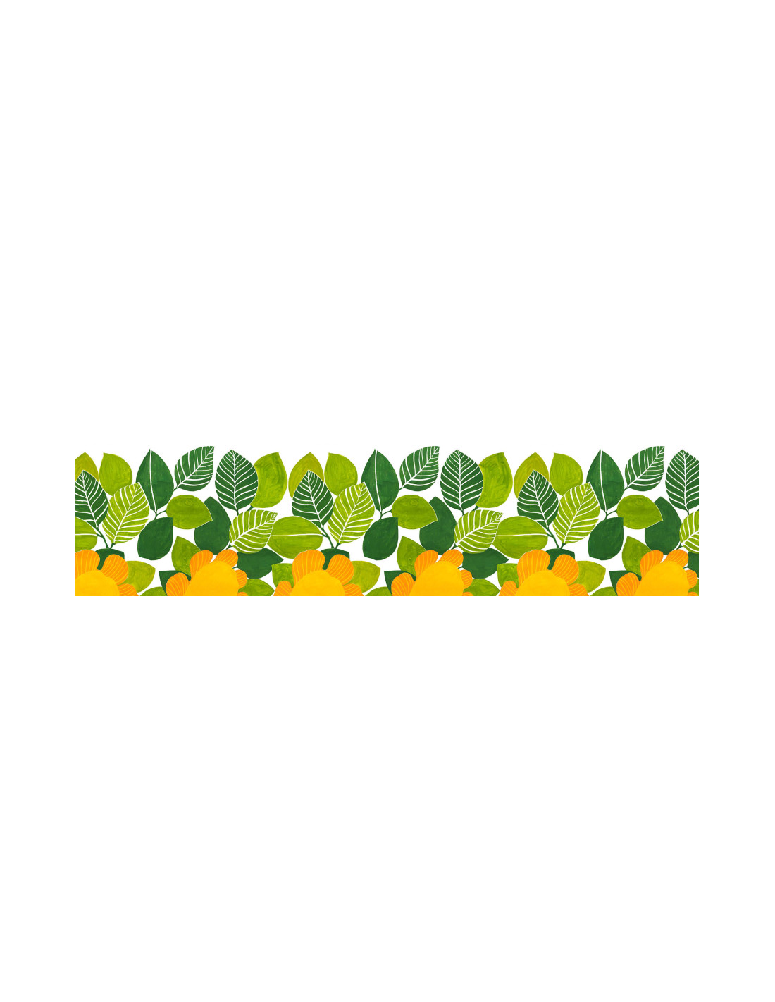 Gardinkappa på metervara med stora blommor och blad i gult och grönt på vit botten. Höjden på kappan är ca 54cm, längden bestämmer du själv. Kappan skickas med ofållade kortsidor, men önskar du dem fållade utan extra kostnad hjälper vi dig med det, ange det som meddelande i kassan vid beställning.
