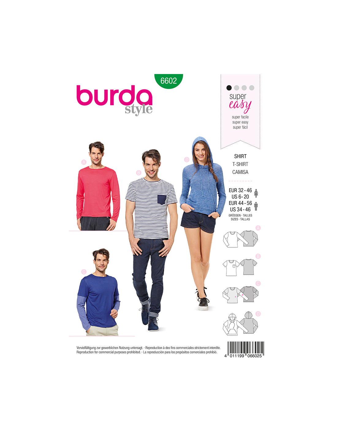 Burda symönster 6602 - Tröja Unisex - Strl Dam 32-46 Herr 44-56