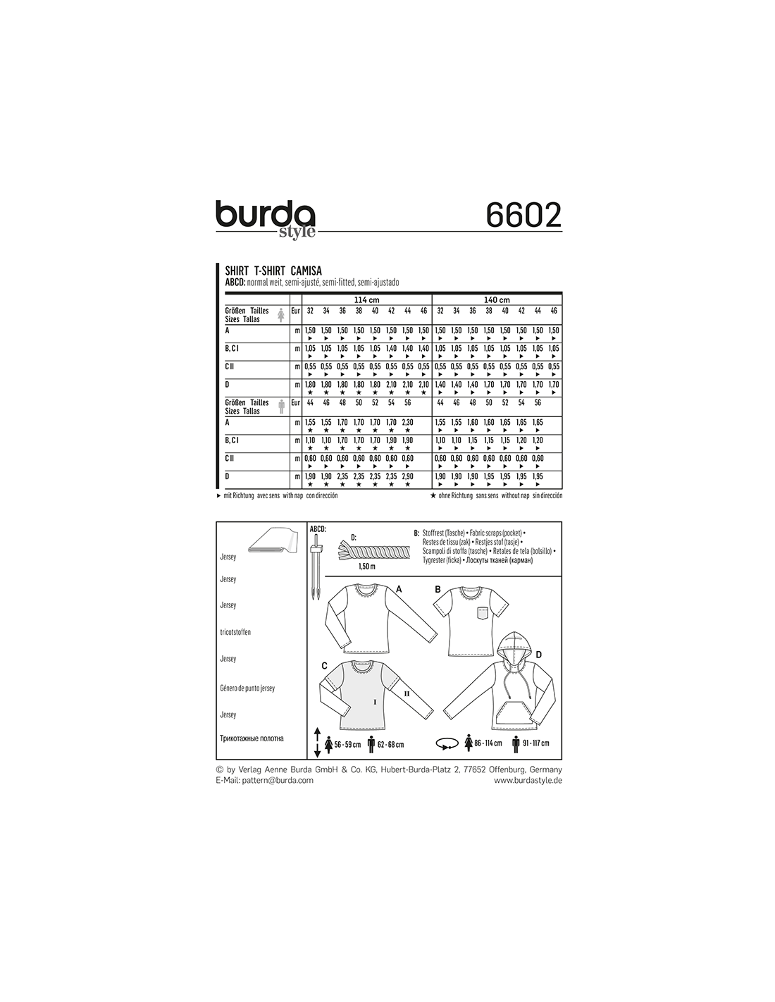 Vill du ha hjälp att tolka tygåtgången? Skicka ett mail till info@tygcenter.se med rubrik Burda 6602 så hjälper vi dig.