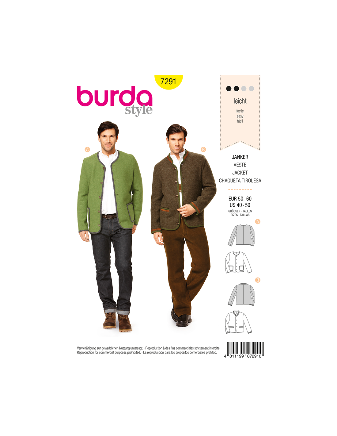 Burda symönster 7291 - Herrmode - Strl 50-60