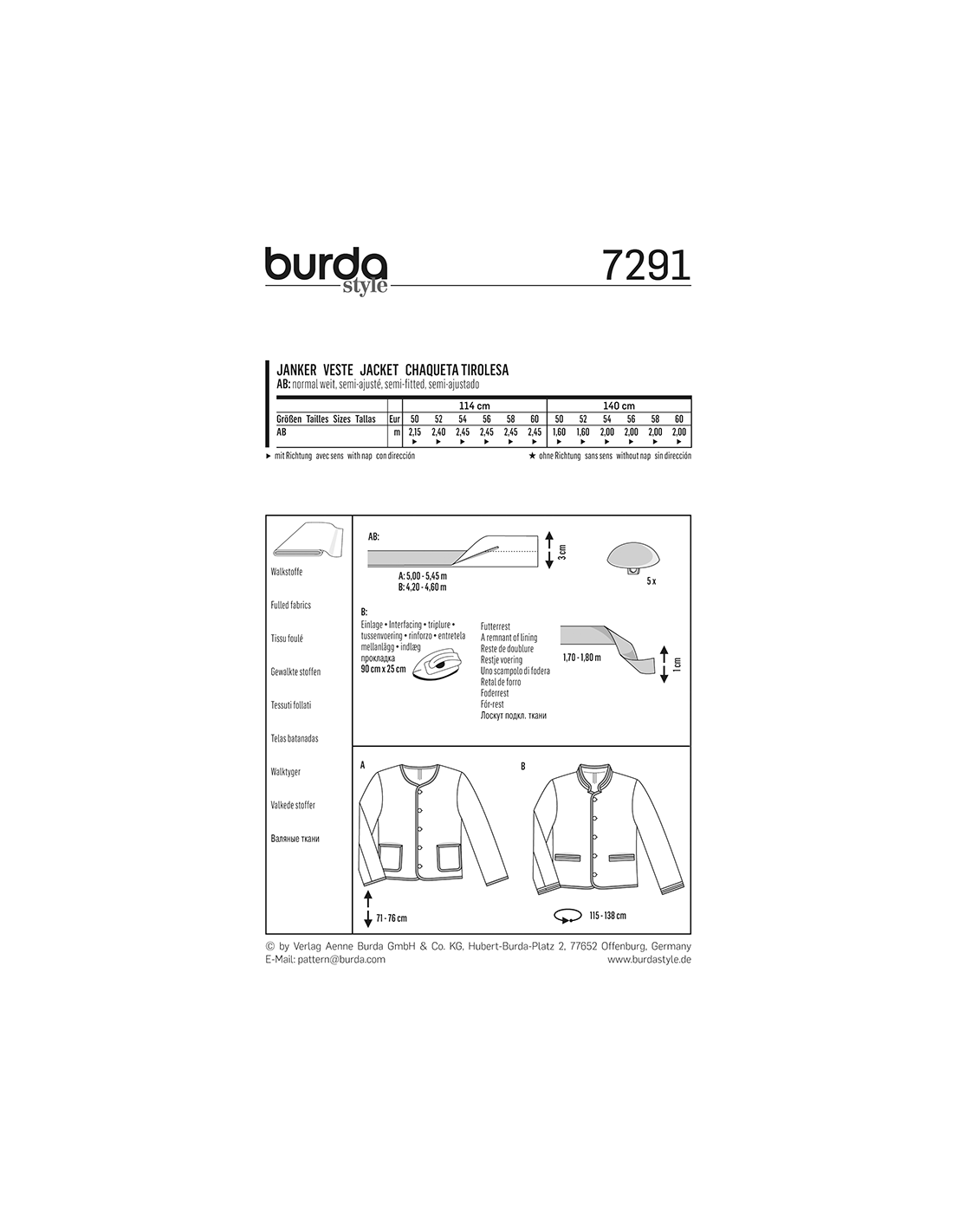 Vill du ha hjälp att tolka tygåtgången? Skicka ett mail till info@tygcenter.se med rubrik Burda 7291 så hjälper vi dig.