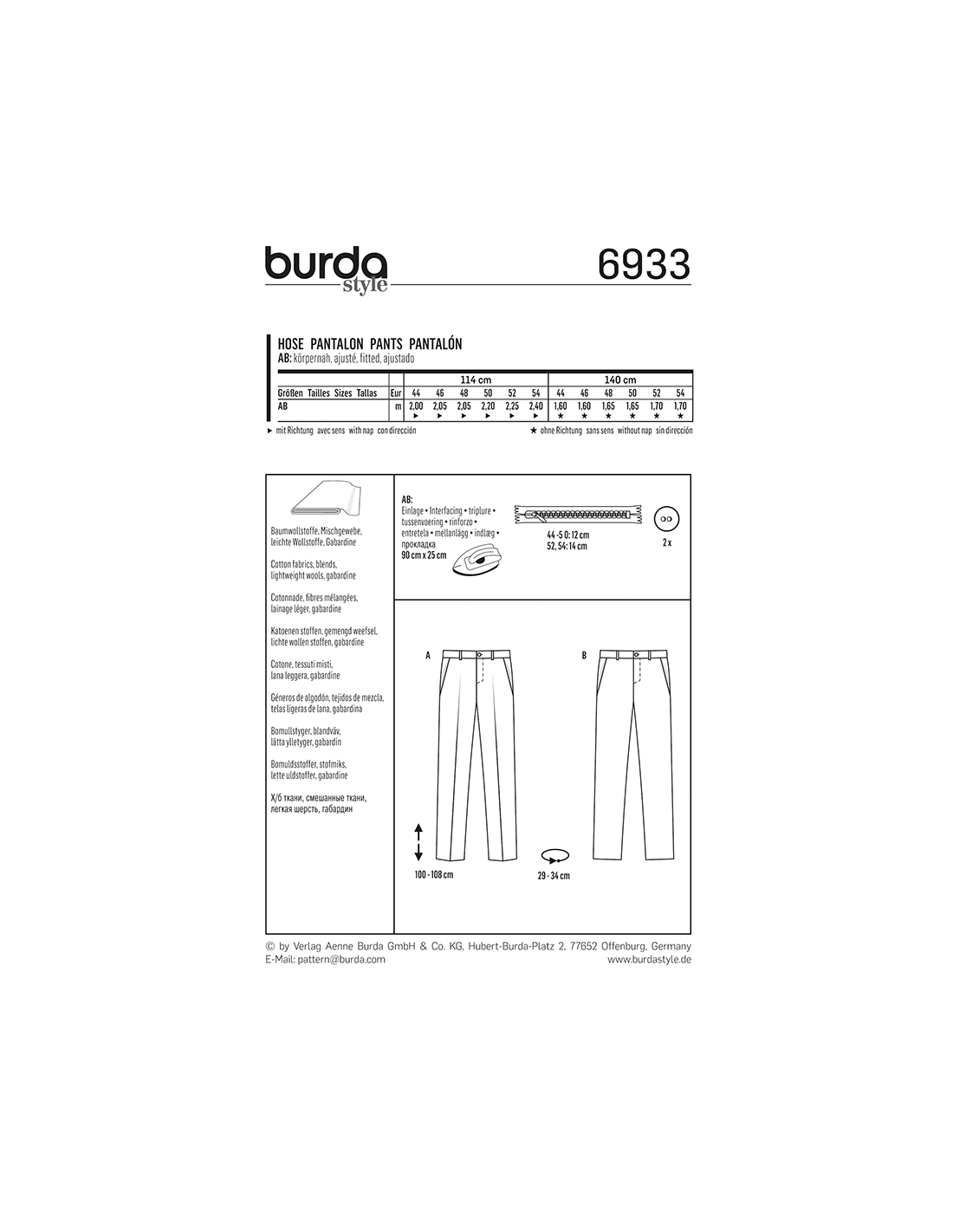 Vill du ha hjälp att tolka tygåtgången? Skicka ett mail till info@tygcenter.se med rubrik Burda 6933 så hjälper vi dig.