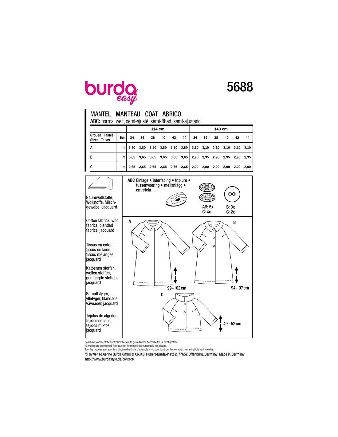 Vill du ha hjälp att tolka tygåtgången? Skicka ett mail till info@tygcenter.se med rubrik Burda 5688 så hjälper vi dig.