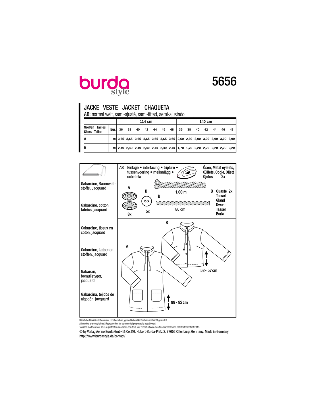 Vill du ha hjälp att tolka tygåtgången? Skicka ett mail till info@tygcenter.se med rubrik Burda 5656 så hjälper vi dig.