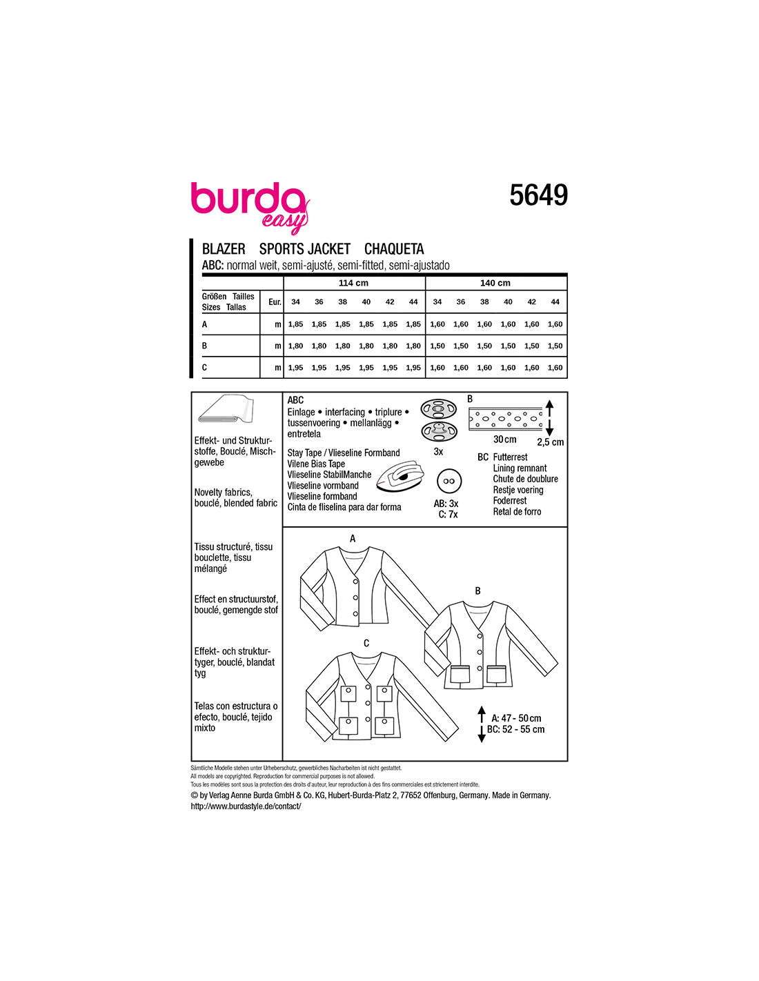 Vill du ha hjälp att tolka tygåtgången? Skicka ett mail till info@tygcenter.se med rubrik Burda 5649 så hjälper vi dig.