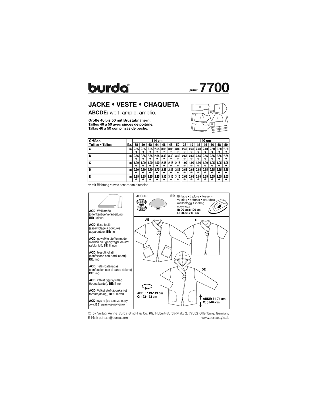 Vill du ha hjälp att tolka tygåtgången? Skicka ett mail till info@tygcenter.se med rubrik Burda 7700 så hjälper vi dig.