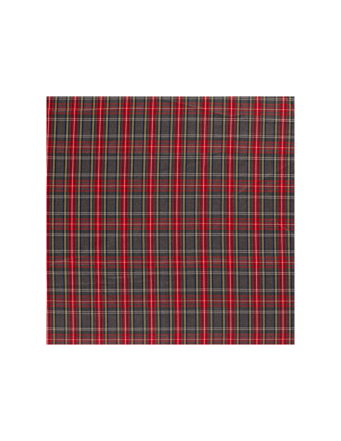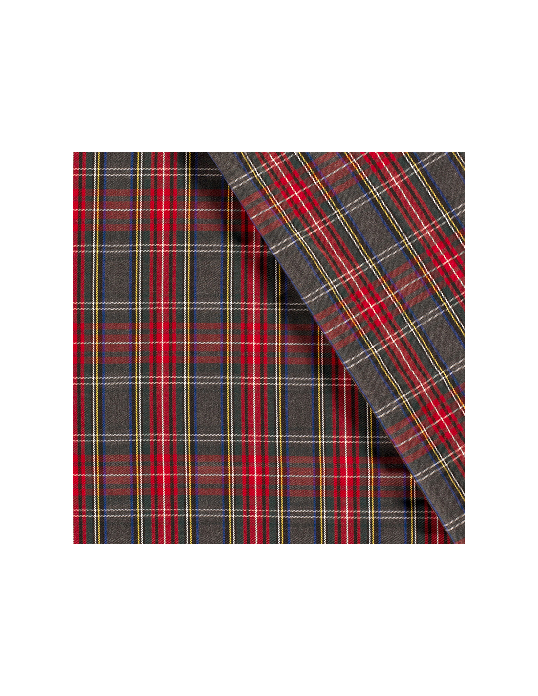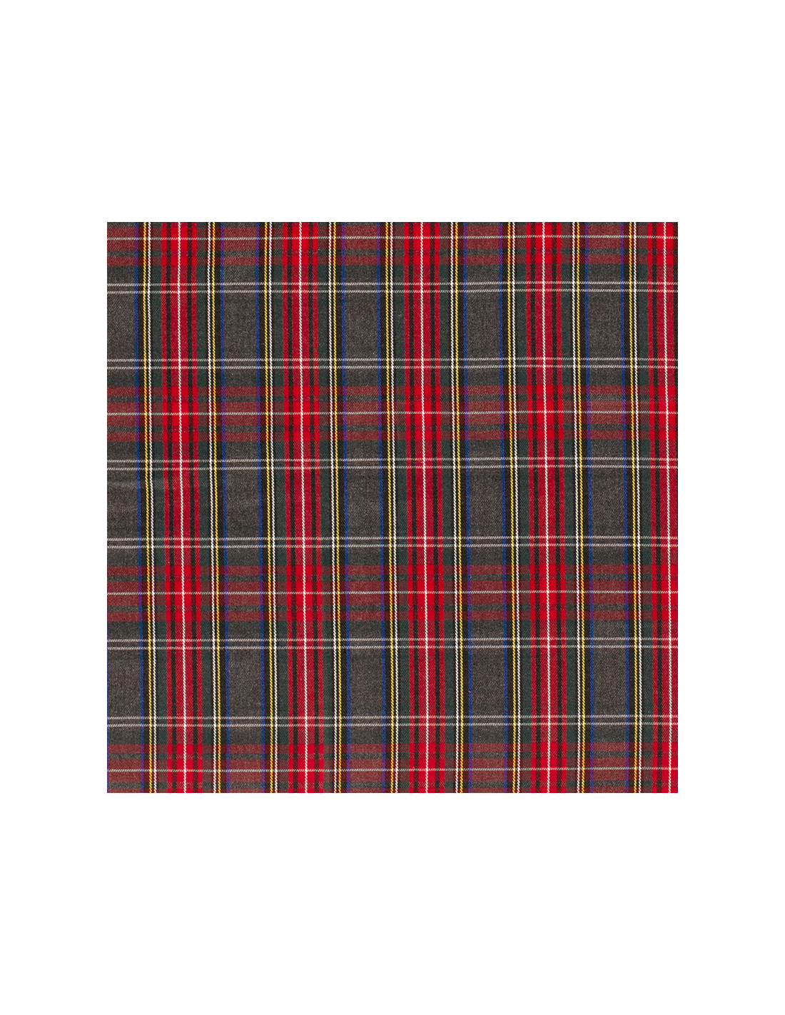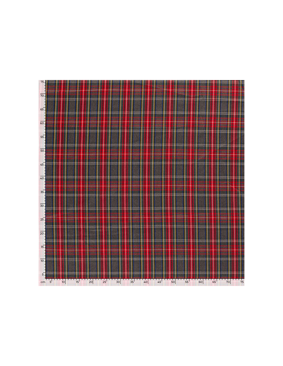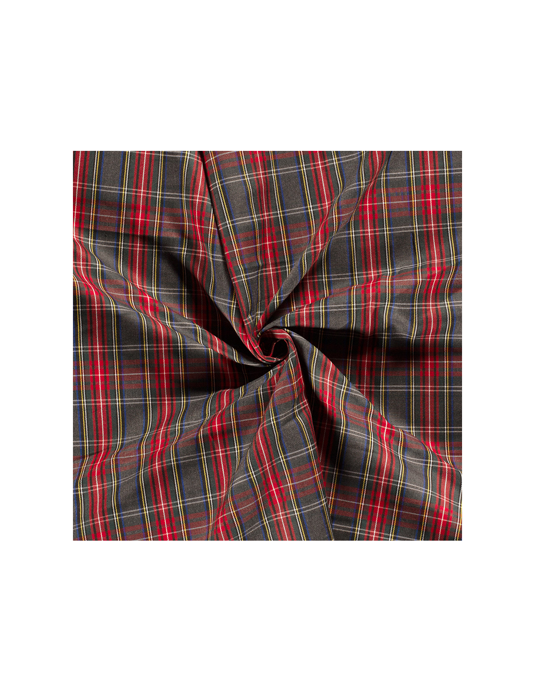 Vävt rutigt tyg i rött, grått, vitt, blått och gult. Stumt tyg som passar till klädsömnad som byxor, kjolar m.m., men även inredning så som gardiner, kuddfodral m.m.