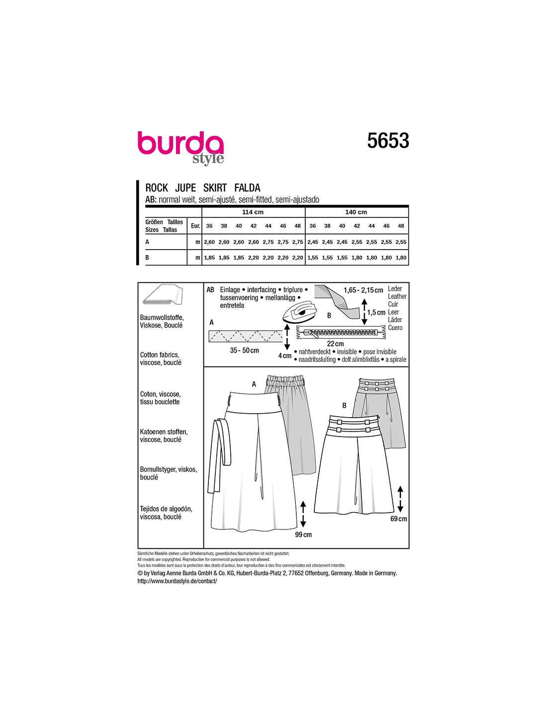 Vill du ha hjälp att tolka tygåtgången? Skicka ett mail till info@tygcenter.se med rubrik Burda 5653 så hjälper vi dig.