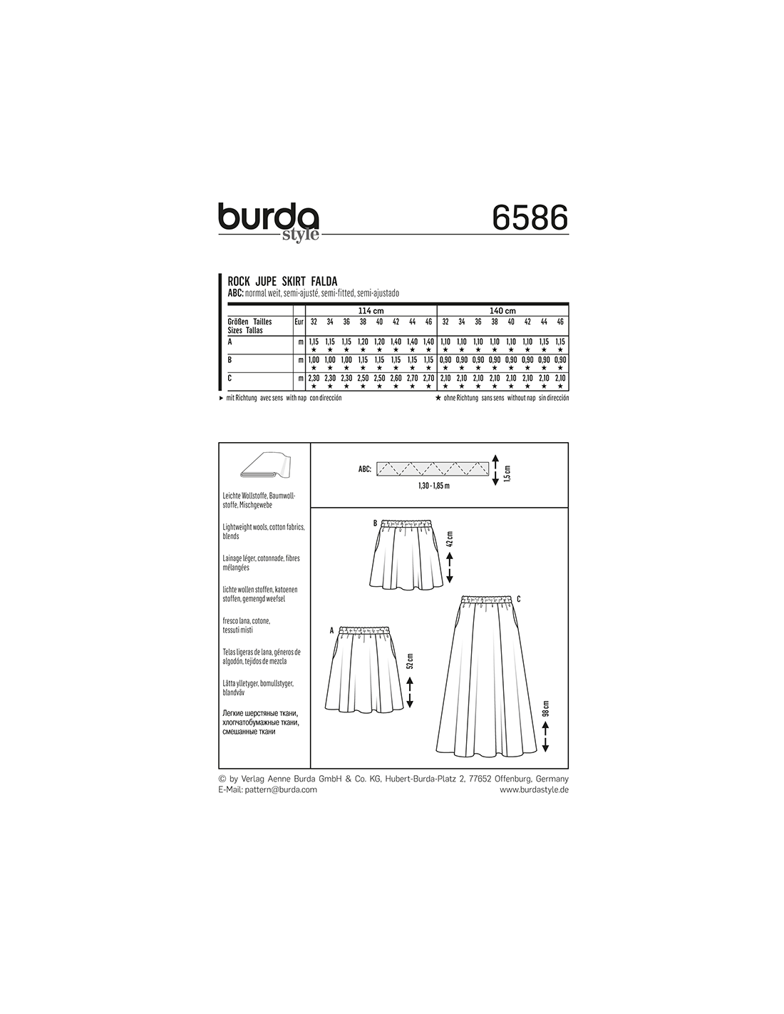 Vill du ha hjälp att tolka tygåtgången? Skicka ett mail till info@tygcenter.se med rubrik Burda 6586 så hjälper vi dig.