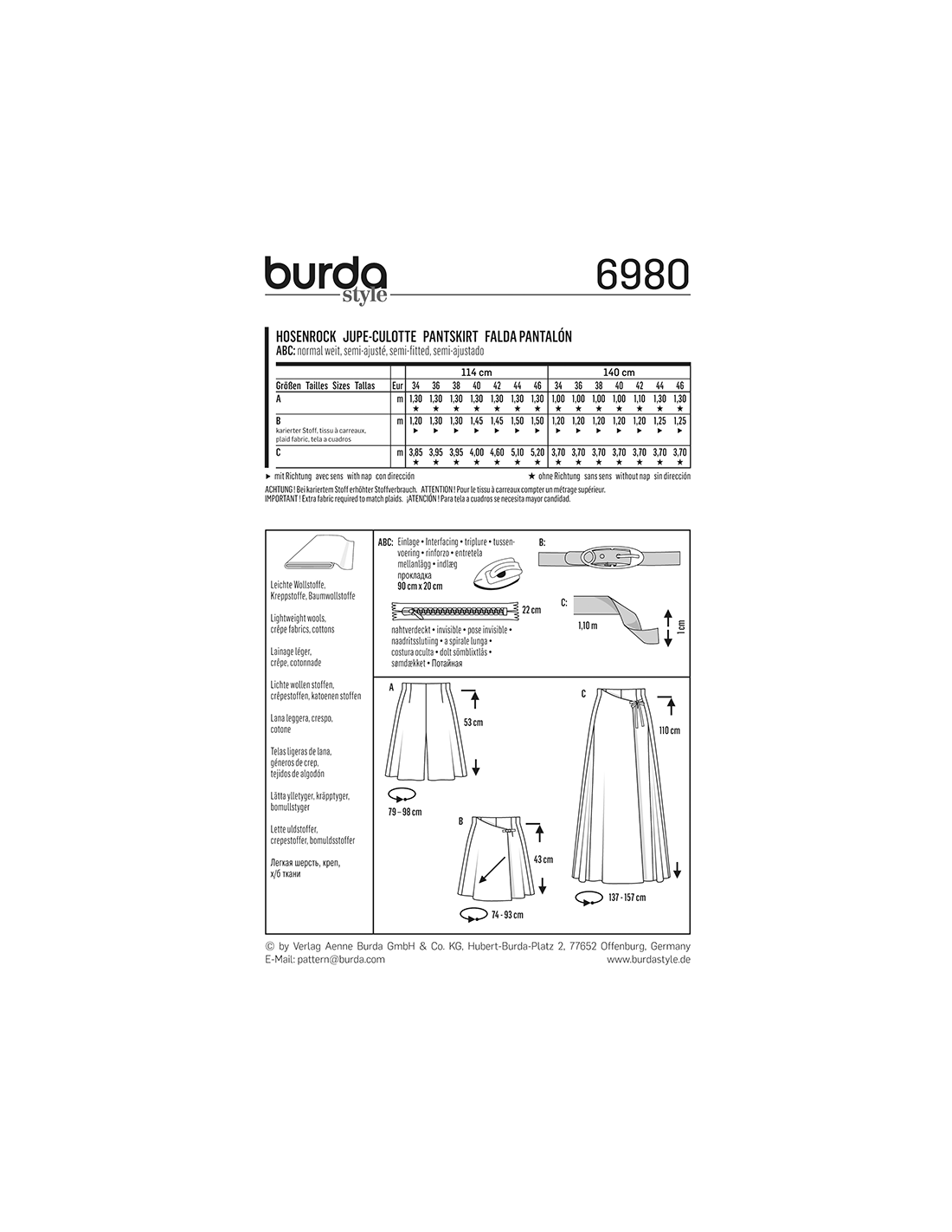 Vill du ha hjälp att tolka tygåtgången? Skicka ett mail till info@tygcenter.se med rubrik Burda 6980 så hjälper vi dig.